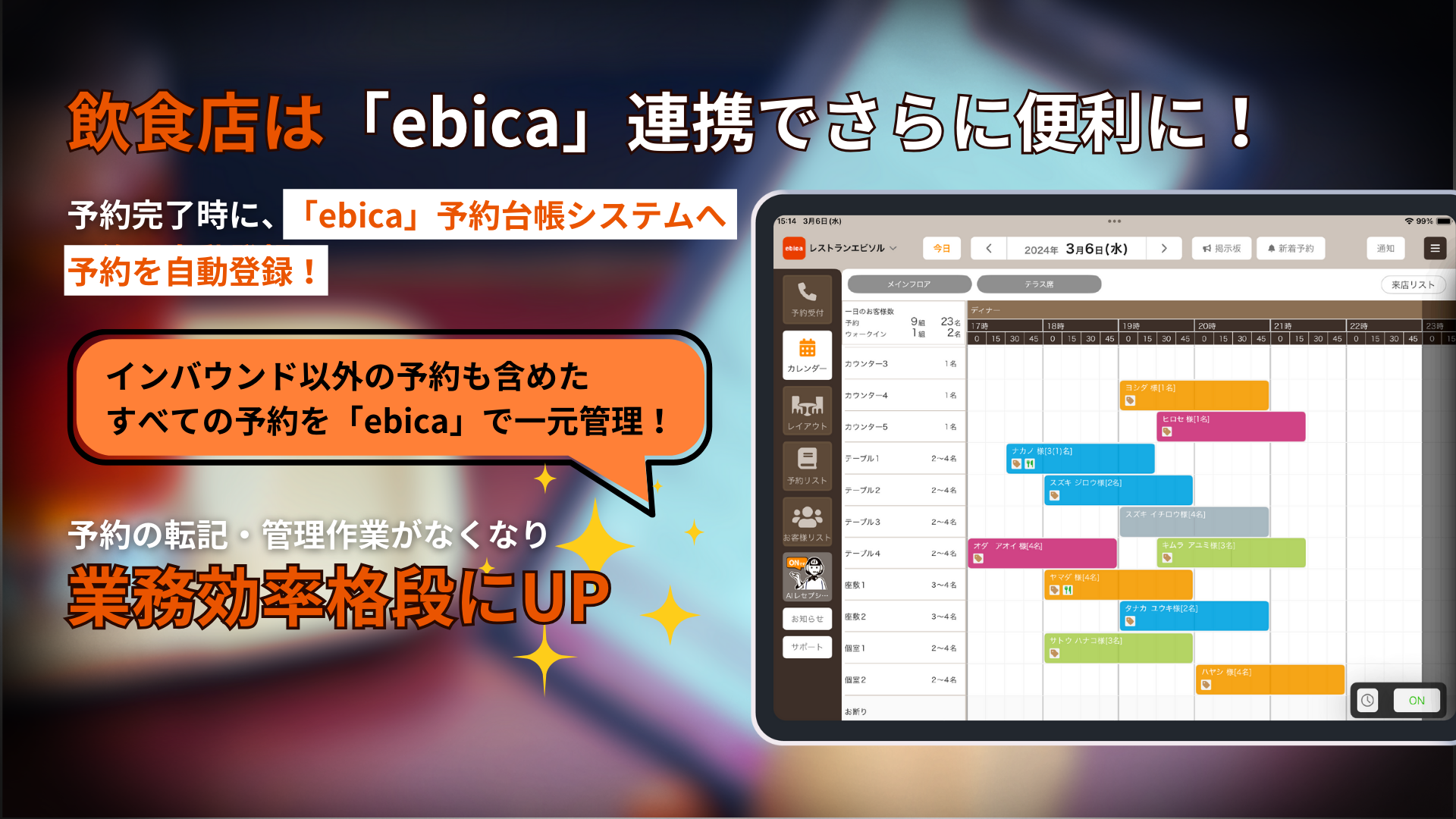 飲食店向け予約管理システム「ebica」では、